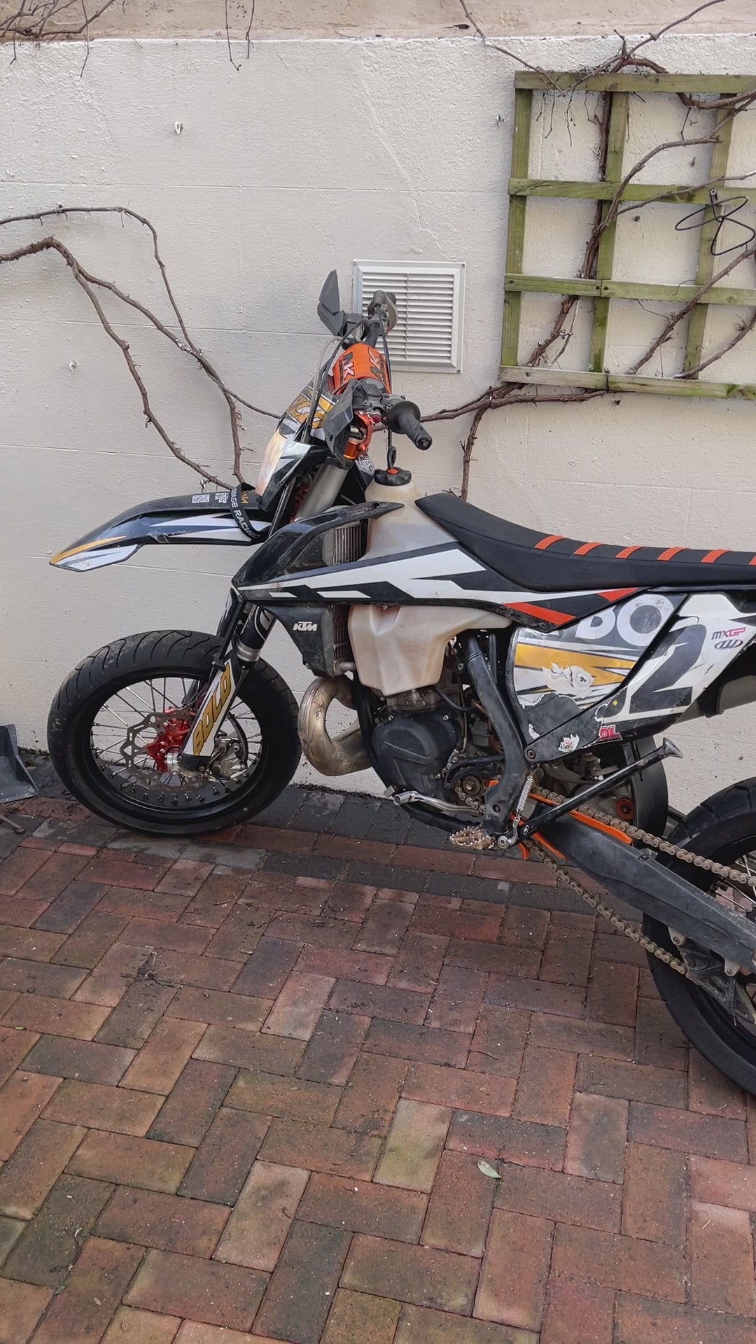 This product fits snugly into the original mounting points on the rear fender, so NO drilling holes! Allowing you to fit your OEM KTM rear tail light to the bracket ( It does not come with the tail light) It comes with 3 adjustable hinges, which gives you the option to fully adjust the angle of the number plate, and yes ... it will stay where you angle it. Perfect for the supermoto conversions.